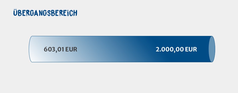 Nicht nur die Geringfügigkeitsgrenze wird angehoben, auch der Übergangsbereich verschiebt sich 2026: regelmäßiges Arbeitsentgelt über 603 EUR bis 2.000 EUR. Bedingung für die besondere Beitragsberechnung/-tragung ist, dass im jeweiligen Sozialversicherungszweig Versicherungspflicht besteht; die geltenden versicherungsrechtlichen Regelungen finden uneingeschränkt Anwendung. Im unteren Übergangsbereich haben Arbeitgeber eine Beitragsbelastung wie bei einem Minijob von ca. 28 Prozent, während Arbeitnehmer den vollen Sozialversicherungsschutz nahezu zum Nulltarif erhalten. Mit steigendem Entgelt nimmt die Belastung der Arbeitgeber bis zum regulären Anteil von gut 20 Prozent ab und die der Arbeitnehmer zu.